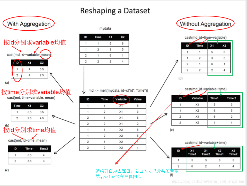 reshape包是一套整合和重构数据集的万能工具,主要分为melt和cast过程