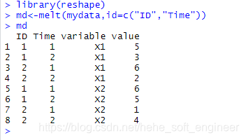 将数据重构为这样的格式:每个变量独占一行,行中带有要唯一确定这个测量所需的标识符变量。