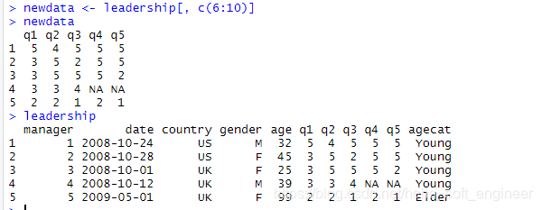 注意“,”一定不能忘掉leadership[c(1,4),]这才是第1,4行