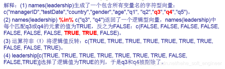 没有加上“,”,致使运行的为leadership[c(1,4)],所以得到的是第1,4,6,9列这样一直循环取值