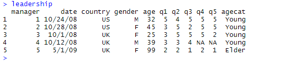 #[leadership$age > 75] 得到的结果相当于 leadership[c(false,false,false,false,true)]