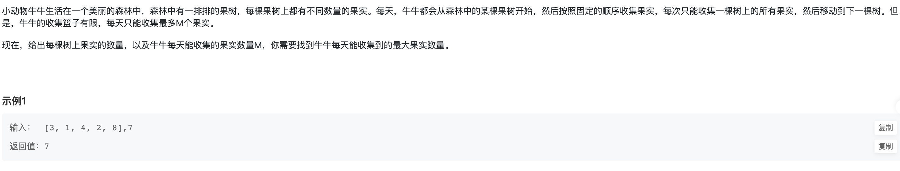 这个题目其实是求给出数组中,子数组和不大于M中,和最大值的子数组。