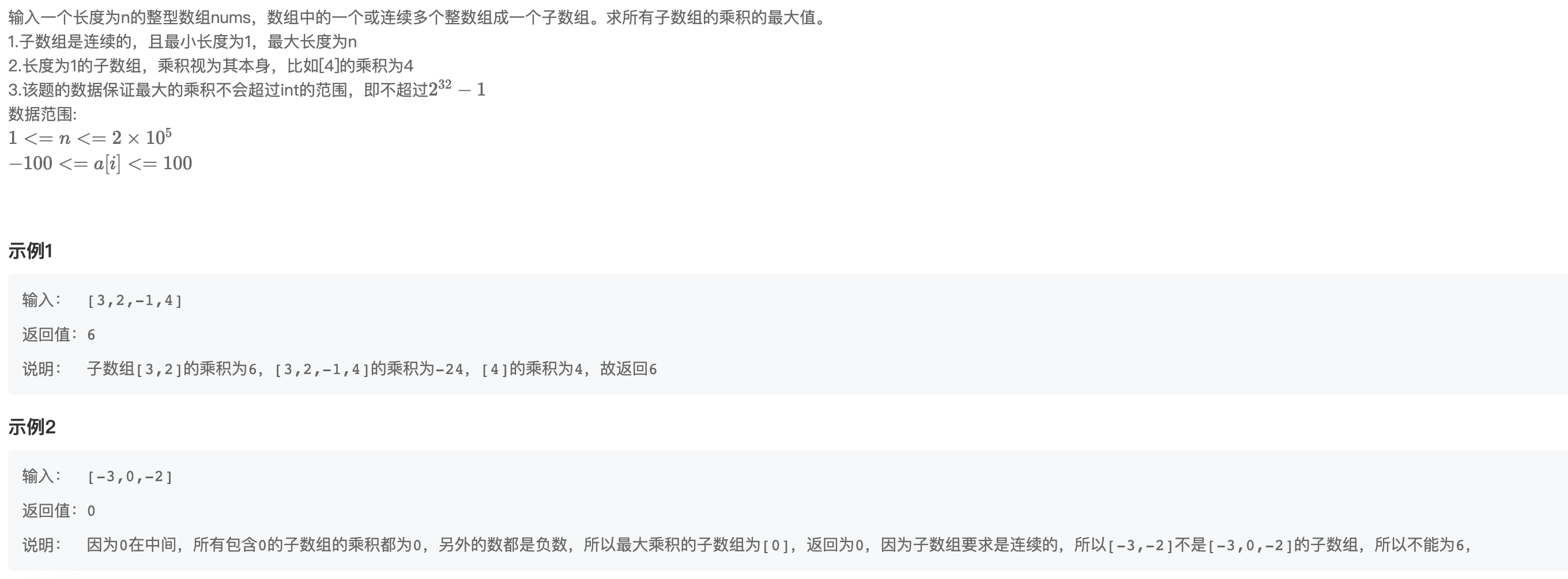 //设置两个数组,记录当前最大、最小乘积