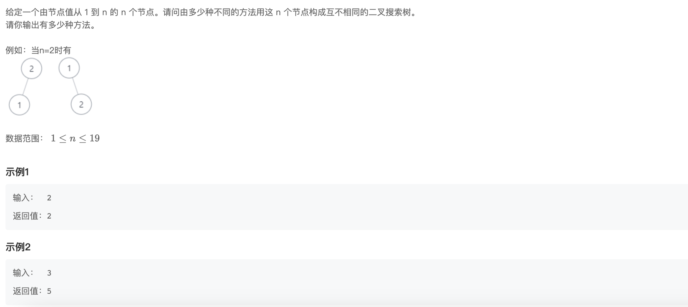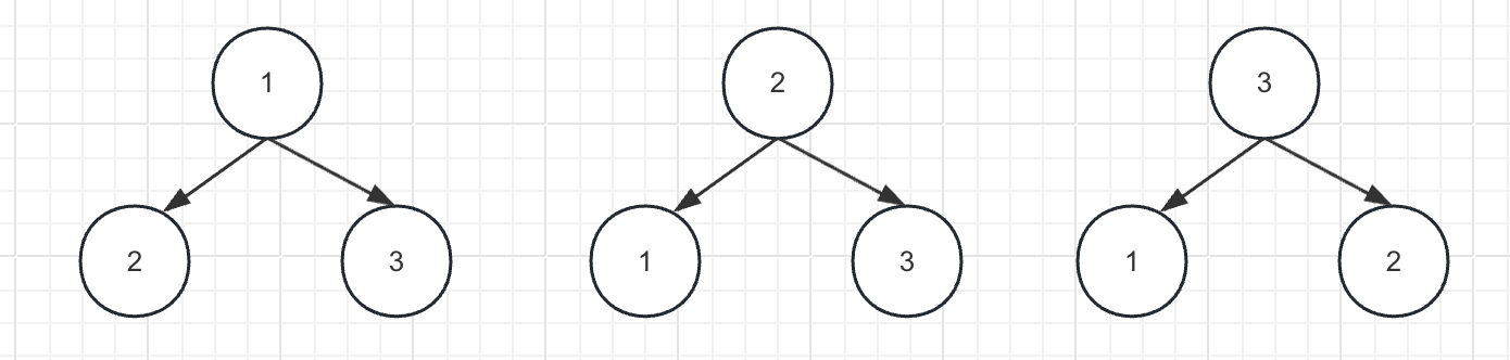 这个题目其实跟值没有关系,是要看n个结点有多少种不同形状的二叉树,不要以为下面这三个是不同的结构,虽然值不一样,但是结构是一样的。