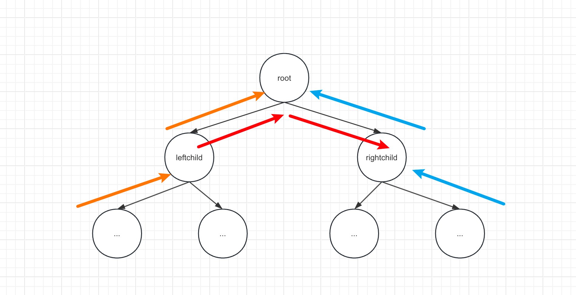 - 左子树+根节点+右子树贡献的值:红色箭头标识路径