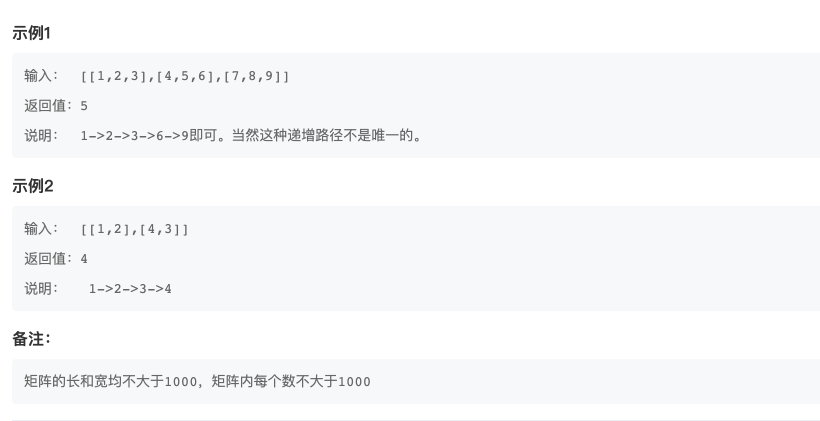 dfsFindLess(matrix,row-1,col,matrix[row][col],maxLen);