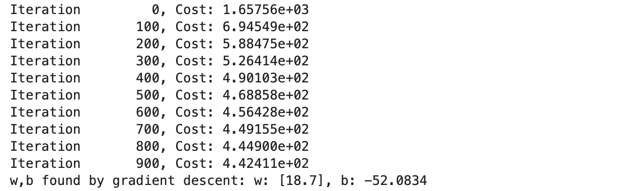 model_w,model_b = run_gradient_descent_feng(X,y,iterations=1000, alpha = 1e-2)