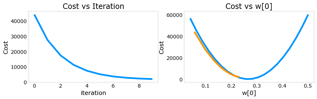 绘制图像如下:(右图只是展示了Cost和w0的关系,不代表和其他特征的关系也是如此)