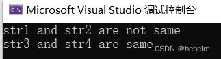 实际上是这样的。str1和str2尽管内容一样,但仍是两个数组,计算机会开辟两块不同的内存空间,因此“str1 and str2 are not same”。但在这里str3和str4指向的是同一个常量字符串。C/C++会把常量字符串存储到单独的一个内存区域,当几个指针指向同一个字符串的时候,他们实际会指向同一块内存,所以str3和str4是相同的。