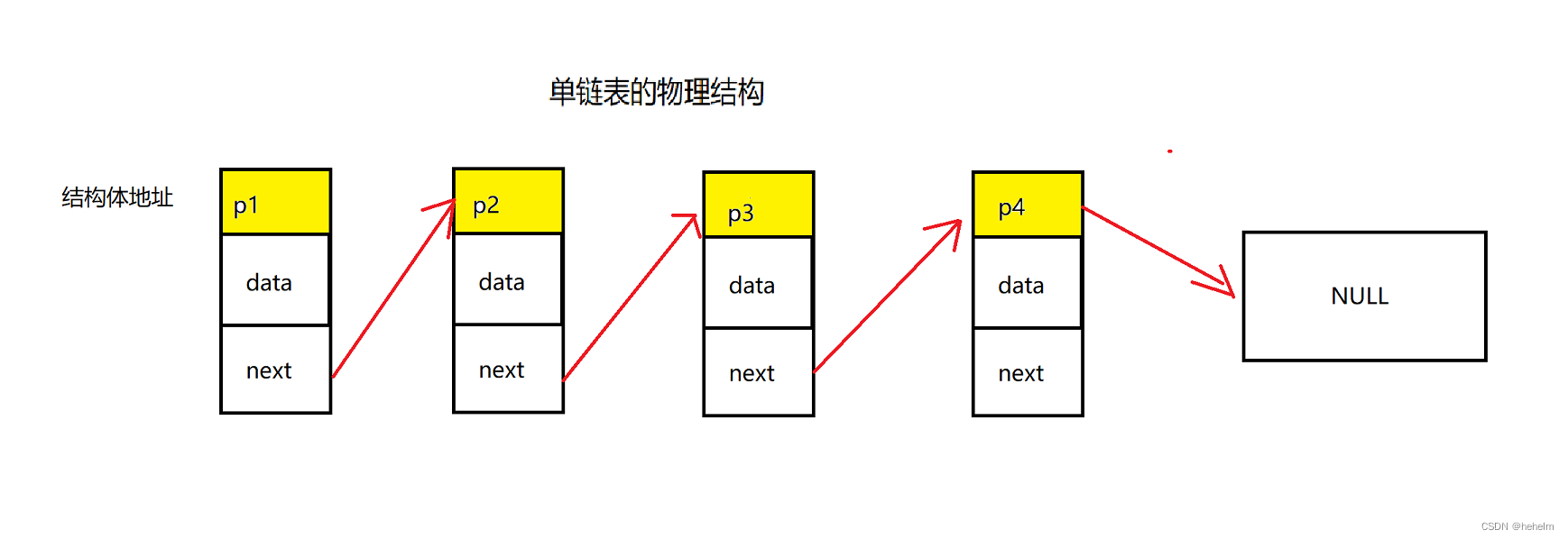 单链表是一种线性的数据结构,相较于顺序表,单链表进行数据操作的效率会优化很多。单链表使用任意一组存储单元来保存线性的数据,并不需要使用连续地址的存储位置,仅通过指针进行访问下一元素,。因此,单链表的物理结构并不要求像逻辑结构一样连续。