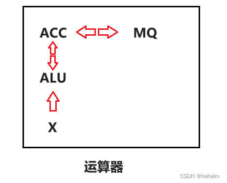 运算器用于实现算术运算和逻辑运算,其中ACC,MQ,X是必备内容,ALU是运算器的核心部分。