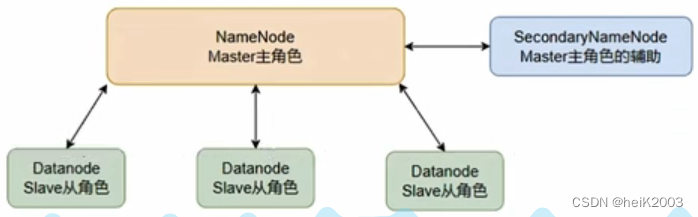 · NameNode:主角色,管理HDFS集群和DataNode角色(领导)