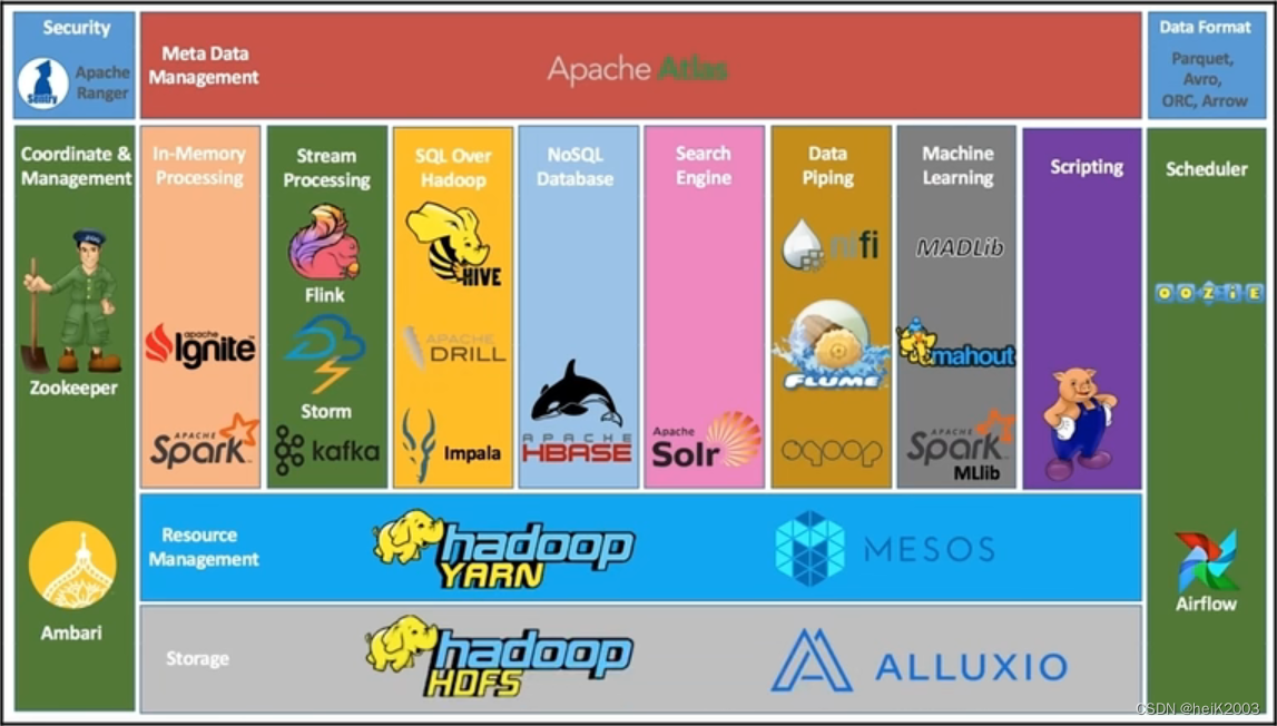 · 存储:Apache Hadoop HDFS、Apache HBase、Apache Kudu、云平台