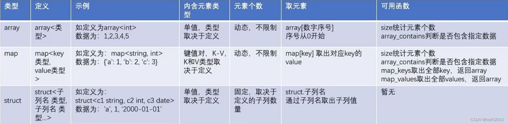 · struct的分隔符只需要:COLLECTION ITEMS TERMINATED BY ‘分隔符’ 只需要分隔数据即可(数据中不记录key,key是建表定义的固定的)