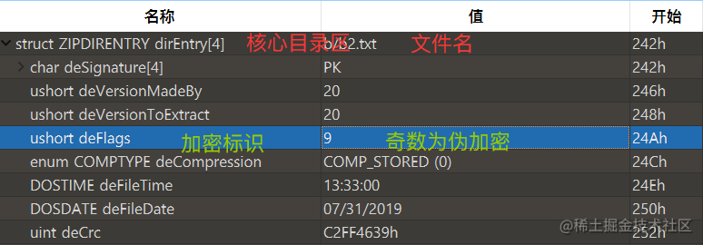 压缩源文件数据区(ushort frFlags)的全局加密应当为 00 00,
