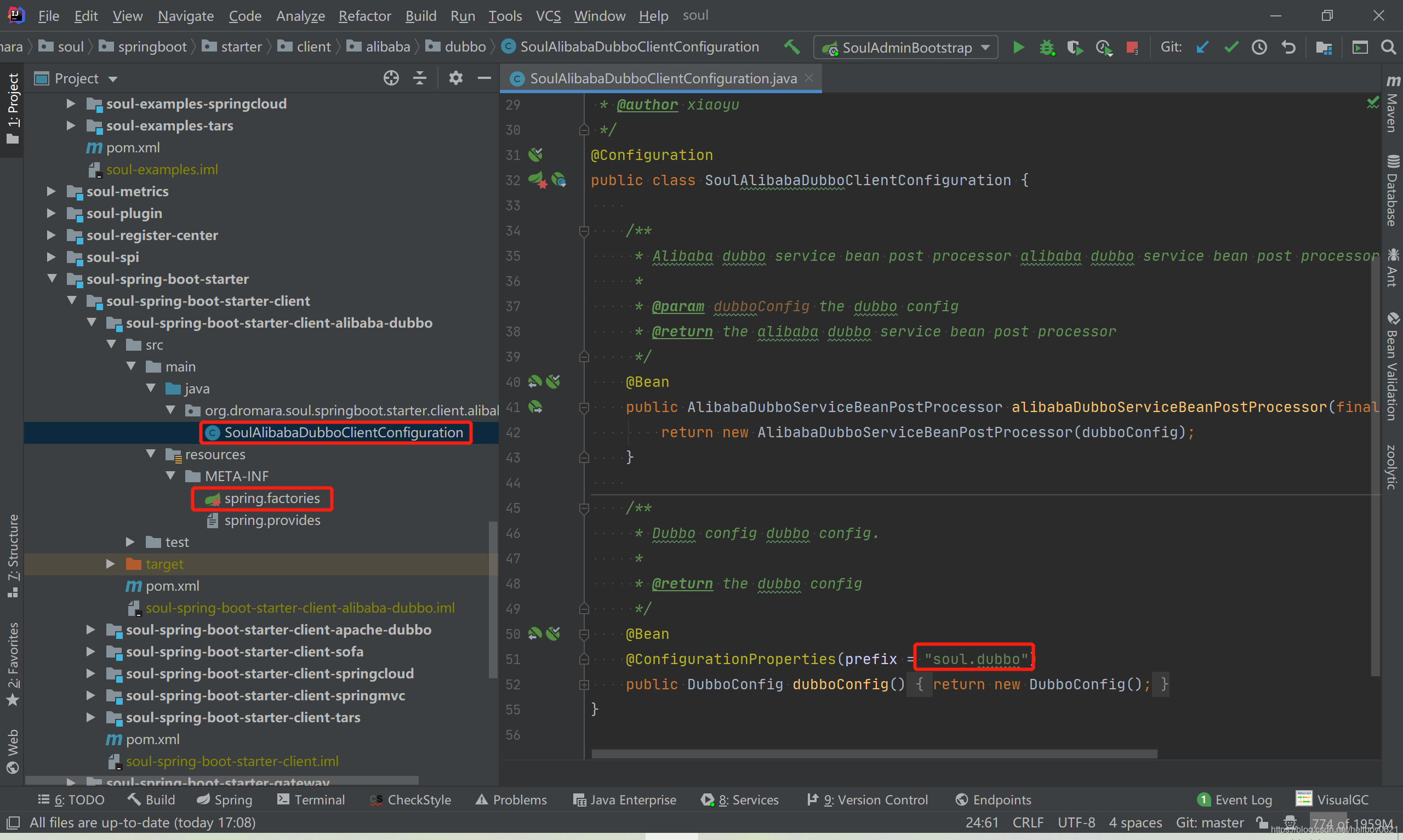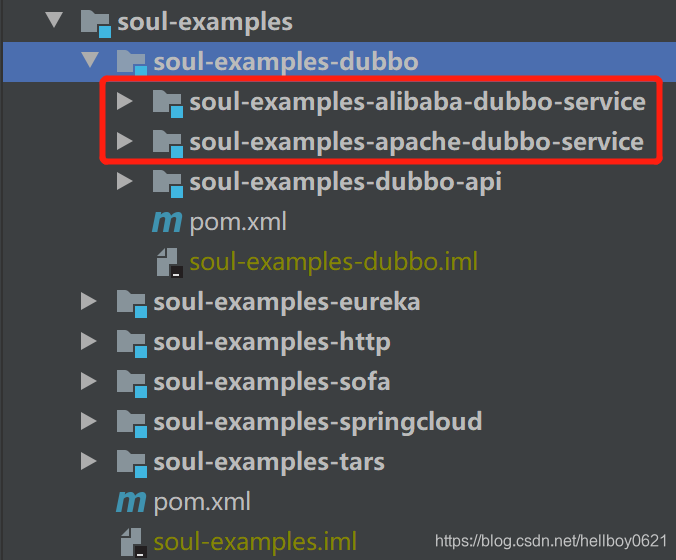 很显然,这个项目 soul-examples-alibaba-dubbo-service 属于 alibaba dubbo 用户 + springboot。