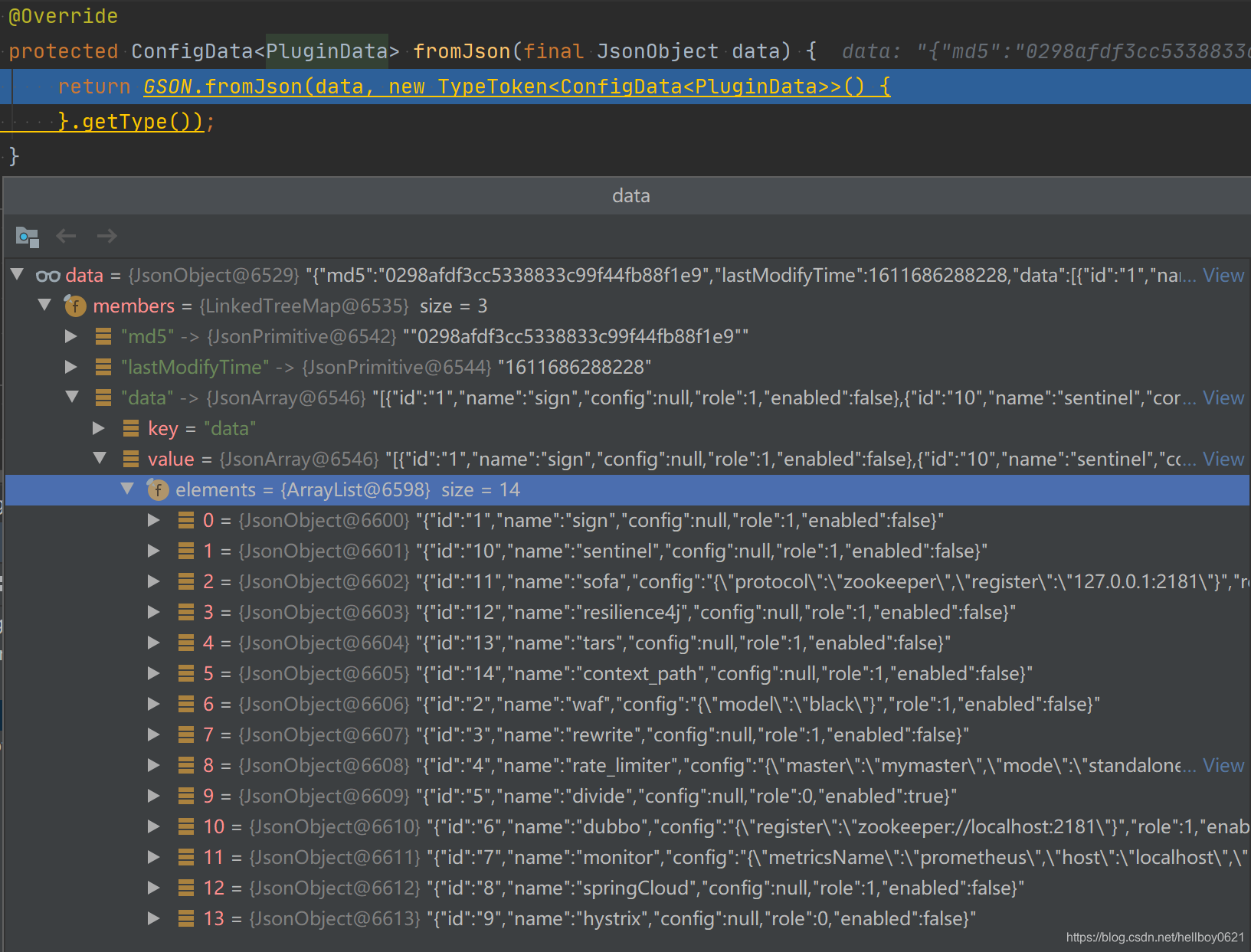 SofaRegisterConfig sofaRegisterConfig = GsonUtils.getInstance().fromJson(pluginData.getConfig(), SofaRegisterConfig.class);