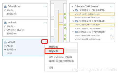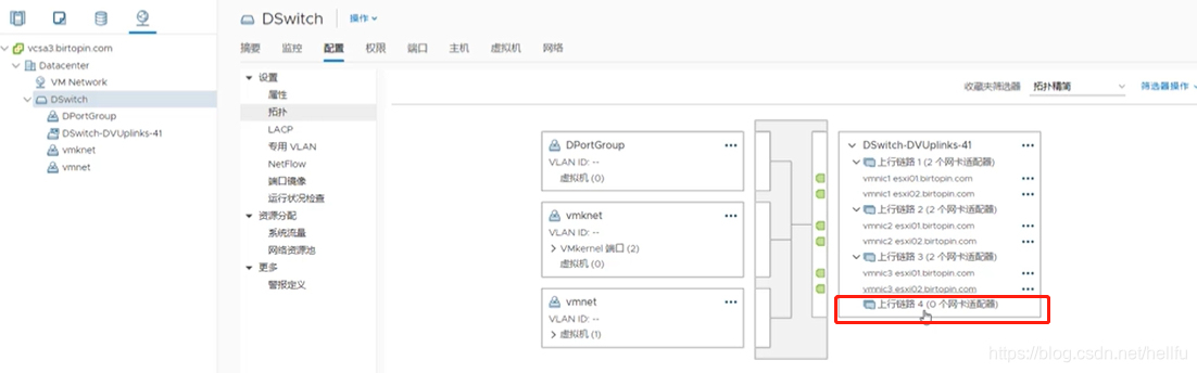 网络,DSwitch,右键设置,编辑设置,常规(上行链路数由3改为4个,编辑名称)