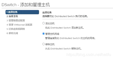 2、主机1,配置,网络,虚拟交换机,分布式交换机 旁的“管理网络适配器”