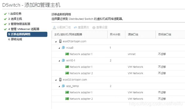 目的,将多台主机中的标准交换机的vmkernel网络,主机网络,物理适配器迁移到VDS中
