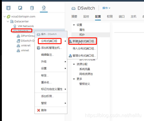 数据中心/网路-右键DSwitch-新建分布式端口组