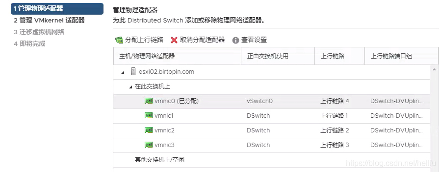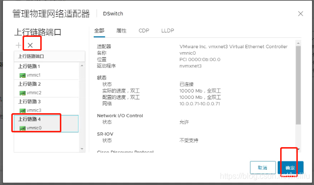 为虚拟机物理网络接口卡(物理适配器)vmnic0分配上行链路