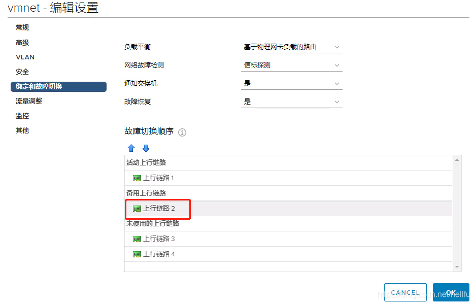 网络,DSwitch,vmnet,配置,属性/策略,绑定和故障切换