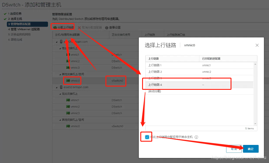 3)管理物理适配器(为vmnic0分配上行链路4)