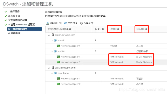 目的,将多台主机中的标准交换机的vmkernel网络,主机网络,物理适配器迁移到VDS中