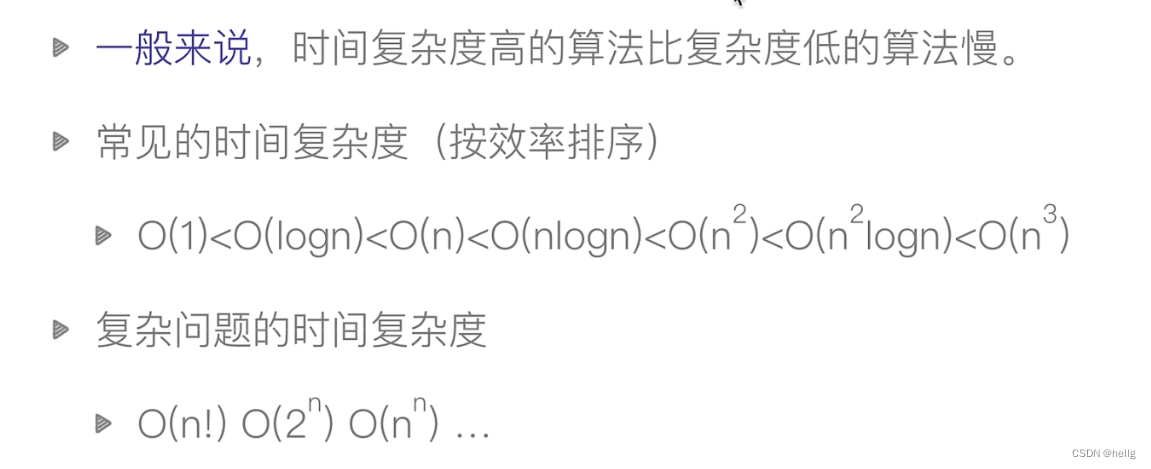 假设存在函数g,使得算法A处理规模为n的问题示例所用时间为T(n)=O(g(n)),则称O(g(n))为算法A的渐近时间复杂度,简称时间复杂度。