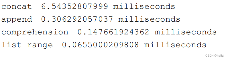 print("concat ", t1.timeit(number=1000), "milliseconds")
