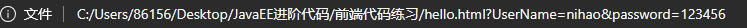 hello.html?后面跟着的就是我在前一个网站填的信息,是一个查询字符串,由多个key-value组成