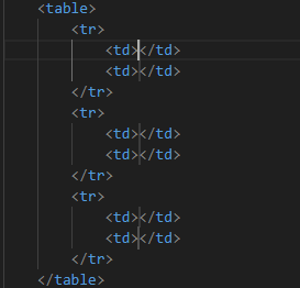 在VScode里面输入:table>tr*3>td*2 会自动生成一个表格框架