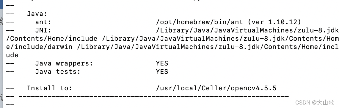 执行CMKE命令后检查java相关的是yes,否则需要检查ant,java环境配置,不是yes不会生成java相关依赖