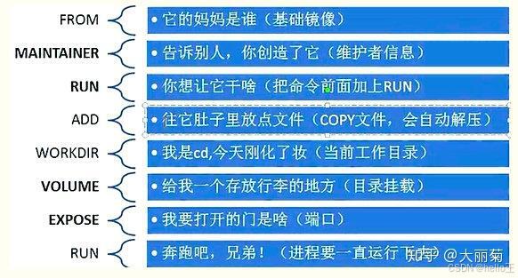 - COPY <src> <dest>:将源文件或目录从构建上下文复制到镜像中的目标位置。这可以用于将应用程序代码、配置文件等复制到镜像中。