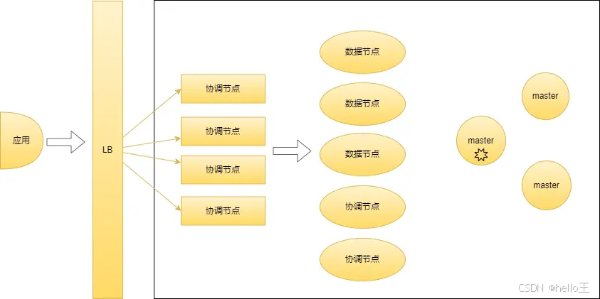 当系统中有大量的复杂查询或者聚合时候,我们可增加Coordinating节点,增加查询的性能。这里增加了负载均衡层,通过负载均衡扩展时对应用程序无感知。