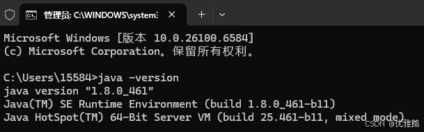 若显示版本信息(如1.8.0_xxx),则安装成功