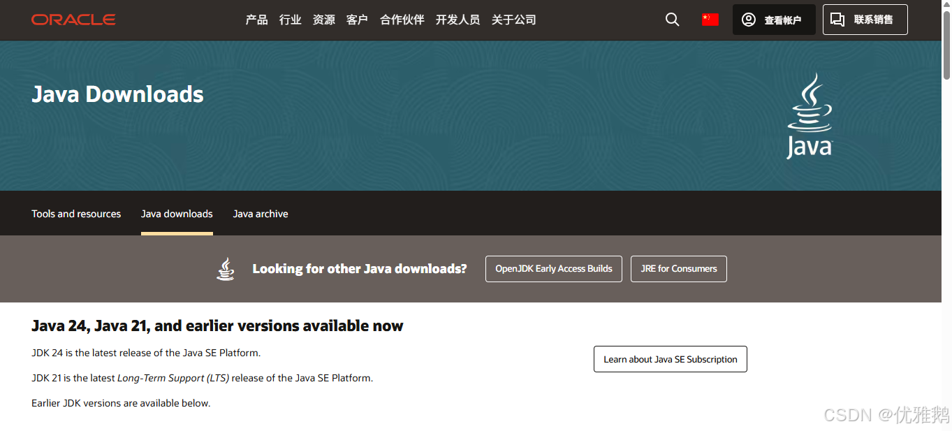 1.访问Oracle官网下载页面,https://www.oracle.com/cn/java/technologies/downloads/