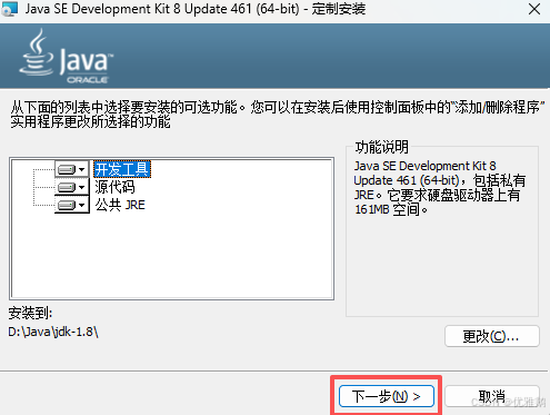 3.建议自定义安装路径(如D:\Java\jdk-1.8),避免使用C盘默认路径