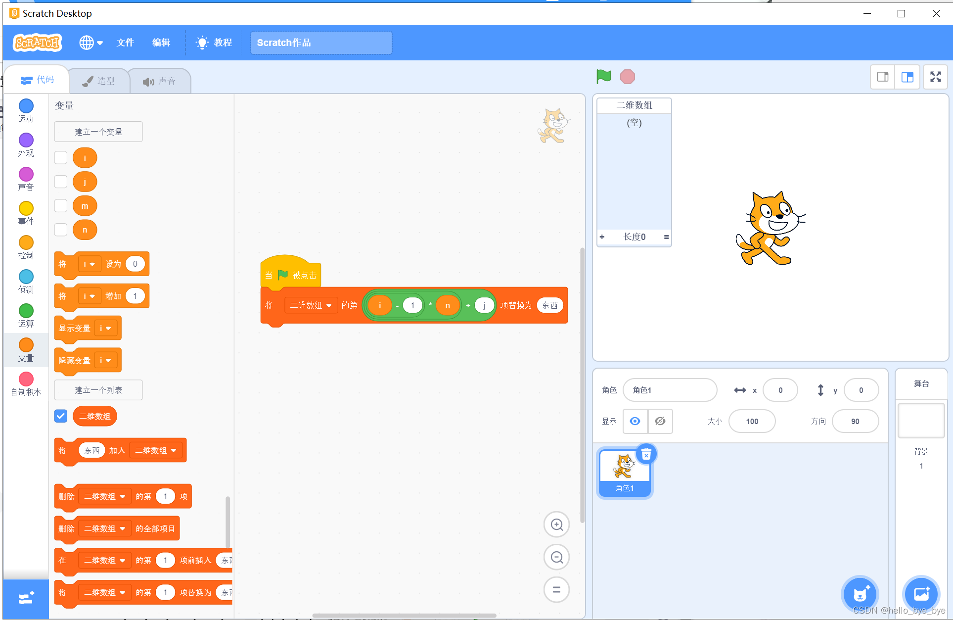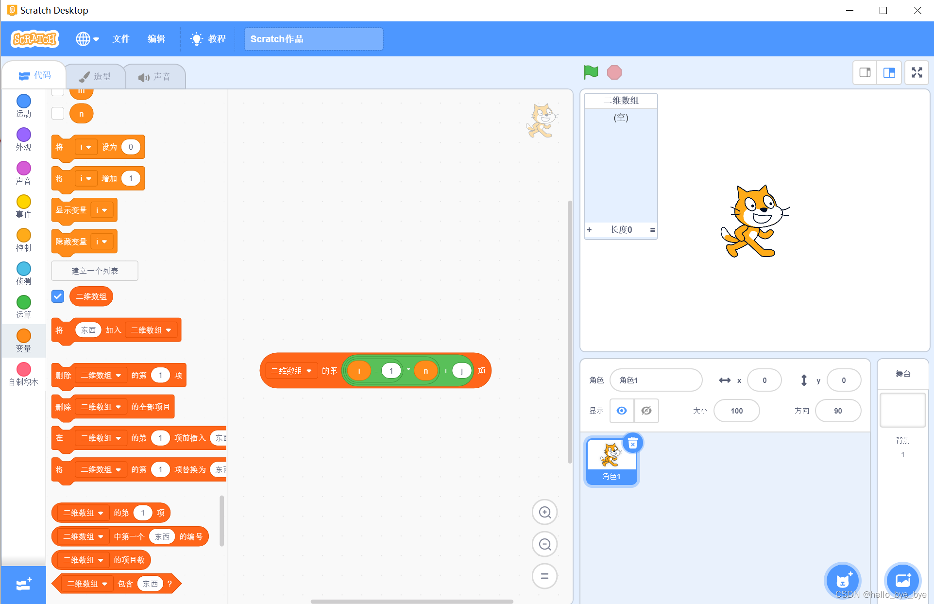 在做游戏(特别是要用地图时),二维数组是很重要的东西。可是scratch没有二维数组,只有列表,怎么办呢?