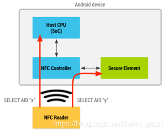 当用户使用安全元件提供NFC卡仿真时,手机中的NFC控制器将来自读卡器的所有数据直接路由到安全元件SE中,SE本身执行与NFC终端读卡器通信,并且交易中根本不涉及Android应用程序。事务完成后,Android应用程序可以直接查询安全元素以获取事务状态并通知用户,app可以通过OMAPI发送APDU指令来与SE中的Applet通信交互。
