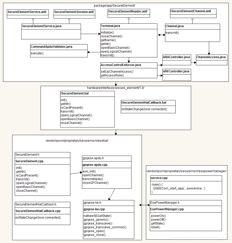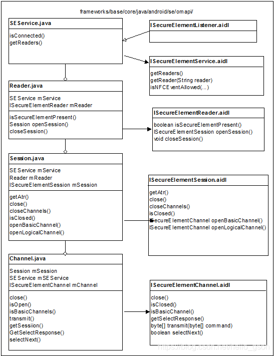 在Android 9中Google将GlobalPlatform OpenMobile API的实现添加至平台中,统一了SE的相关访问接口。在支持的设备上,应用可以使用OMAPI API访问安全元素(SE),以启用智能卡支付等安全服务。硬件抽象层(HAL)提供了必要的API,用于枚举多种可用的Secure Elements(如eSE,UICC等)。