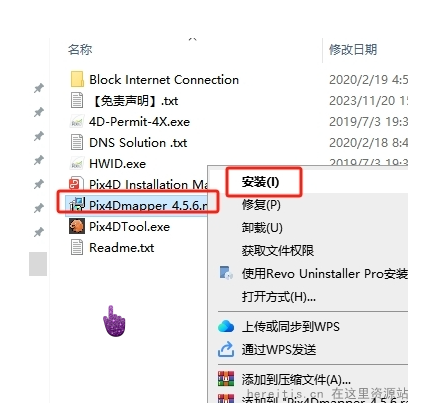 选择“Pix4Dmapper_4.5.6.msi”鼠标右键点击【安装】