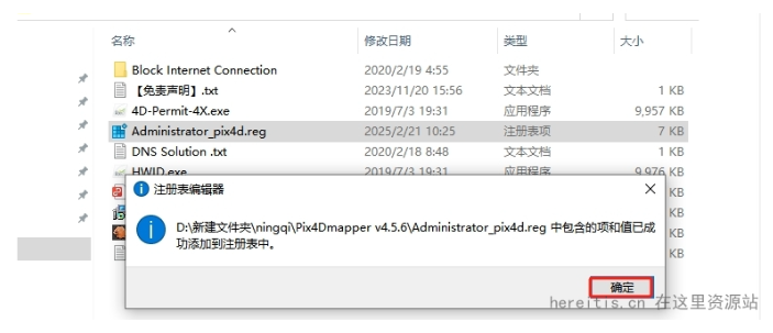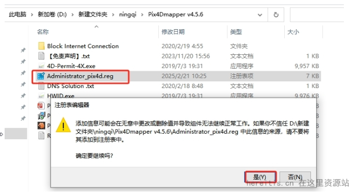 之后会在安装包目录下生成一个注册表, 双击运行注册表,点击是