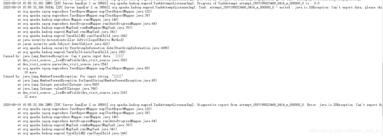 最先检查的一点:hive的文件存储格式!Sqoop 从hdfs 同步数据到mysql,hive 中的表 必须是textfile 。我就是这个问题,一开始设置的orc,导出找问题改改改,一天以后,发现的这个,然后成功导入数据╮(╯▽╰)╭ |