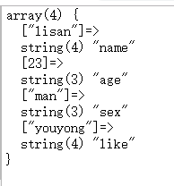 $a1=array("name"=>"lisan","age"=>23,"sex"=>"man","like"=>"youyong");
