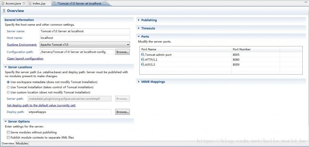 2、修改Tomcat服务器Server Locations