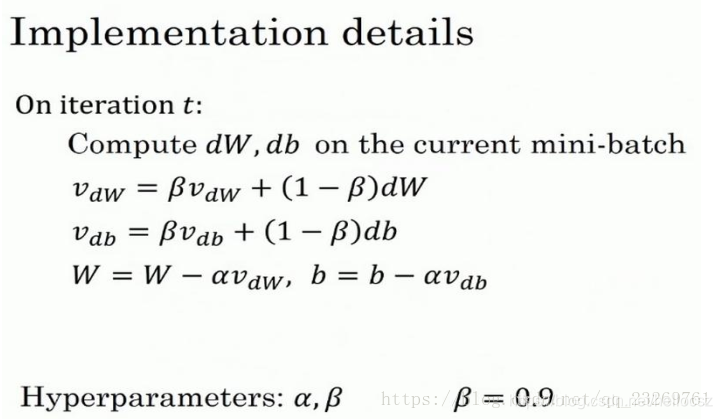 然而网上更多的是另外一种版本,即去掉(1-β),相当于上一版本上本次梯度的影响权值*1/(1-β) ,两者效果相当,只不过会影响一些最优学习率的选取