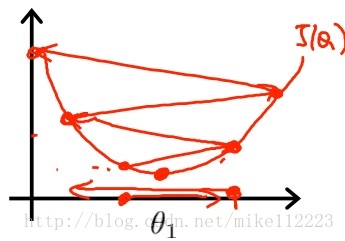 它们都存在代价函数增大的情况,实际learning rate选的太大导致的,出现下图的横跳情况。