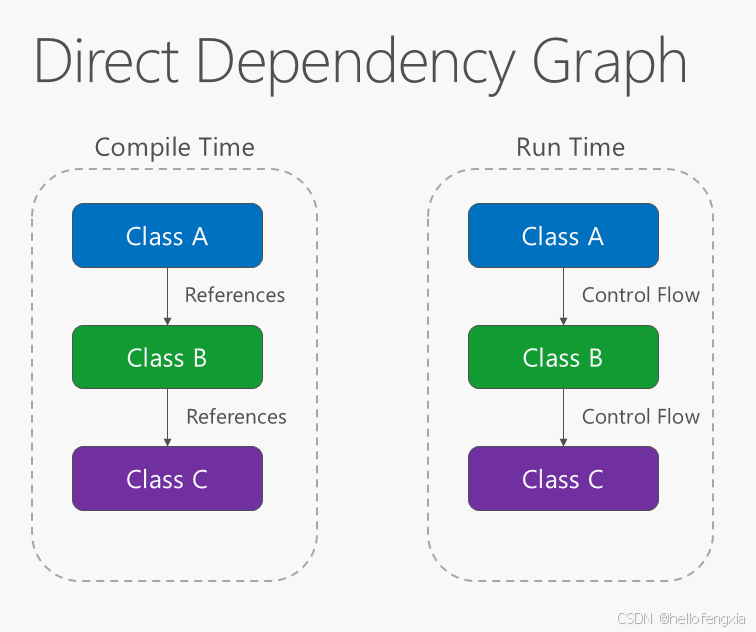 应用程序中的依赖关系方向应该是抽象的方向,而不是实现详细信息的方向。 大部分应用程序都是直接依赖项关系。
